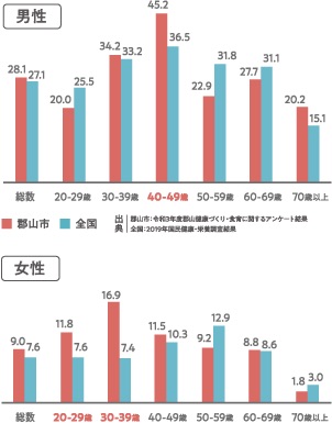 出典|郡山市:令和3年度郡山健康づくり・食育に関するアンケート/全国:2019年国民健康・栄養調査結果